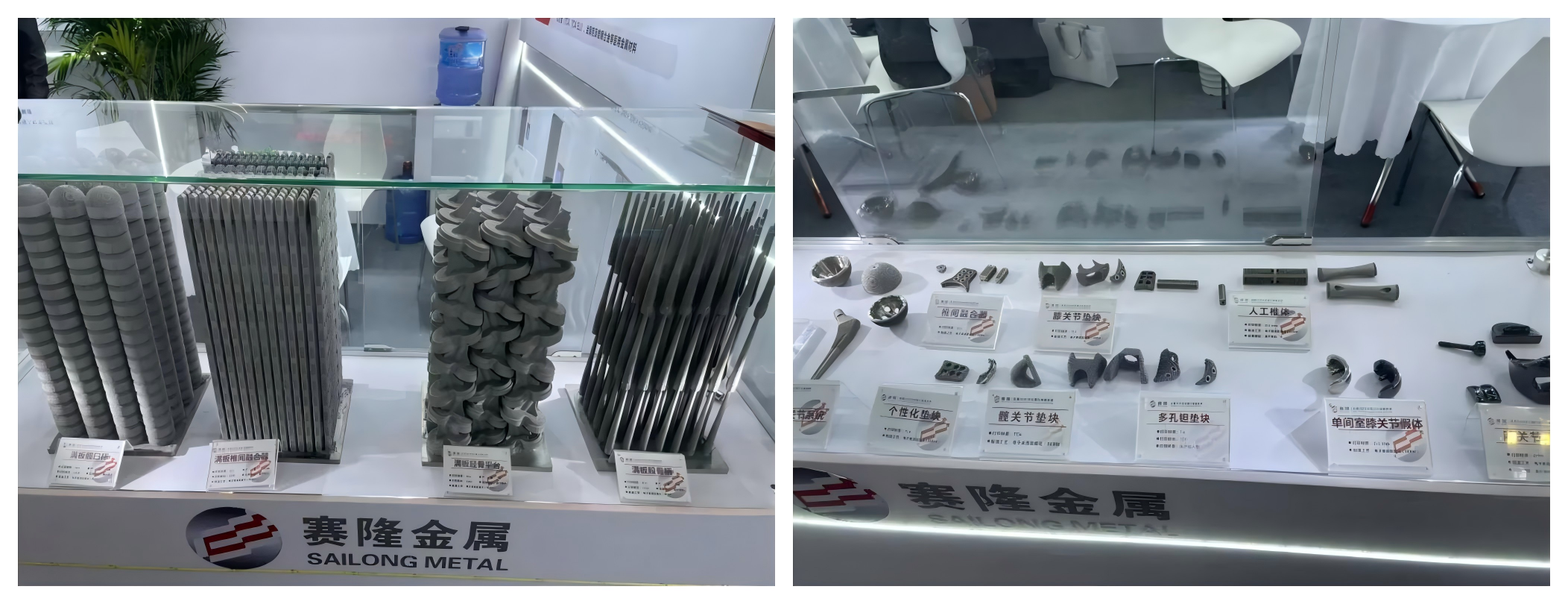 展會期間,西安賽隆集中展示了電子束3D打印技術在骨科領域的核心優勢及典型應用案例,涵蓋關節、脊柱等多個細分領域。在標準化鈦合金植入物批量生產方面,西安賽隆重點展示了滿板打印髖臼杯、滿板打印融合器、滿板打印股骨柄及滿板打印脛骨平臺,全面介紹了公司電子束3D打印骨科植入物的低成本、高效率的獨特優勢。在產品研發與新材料應用方面,西安賽隆展示了多項電子束3D打印創新研發成果,包括個性化鈦合金、多孔鉭墊塊以及鋯鈮合金踝骨、橈骨、膝關節等新型假體案例。公司參展團隊與來自國內外多家知名醫療機構的臨床醫師、科研人員等圍繞骨科植入物的創新設計、注冊認證、臨床轉化及應用前景等方面進行了深入交流,共話精準醫療、數字醫療新發展。